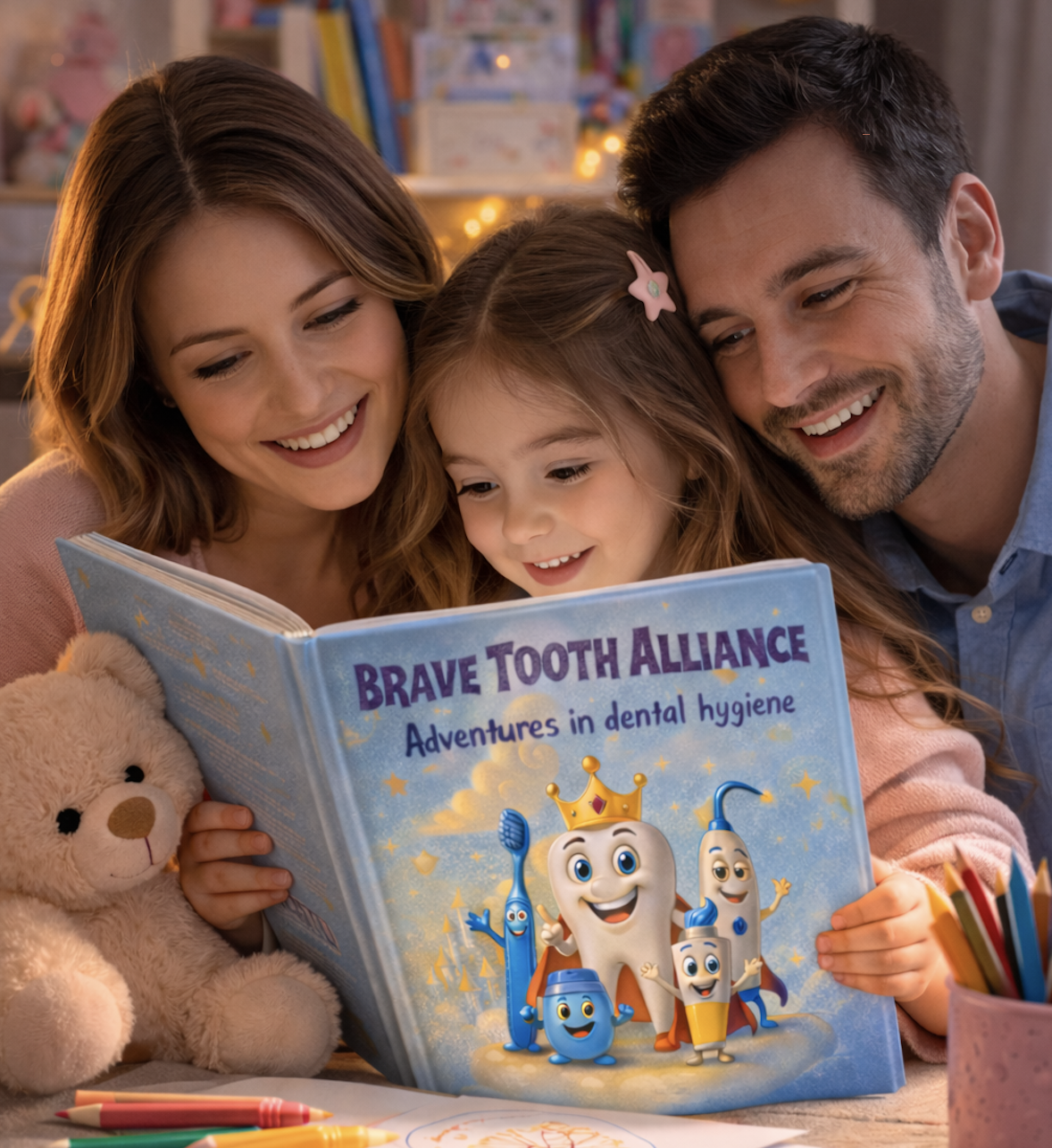 Brave Tooth Alliance is a story-led brushing guide designed for kids 5-9 - and meant to be read together. It uses playful characters and real dental routines to help families build lasting habits through fun, not frustration.
