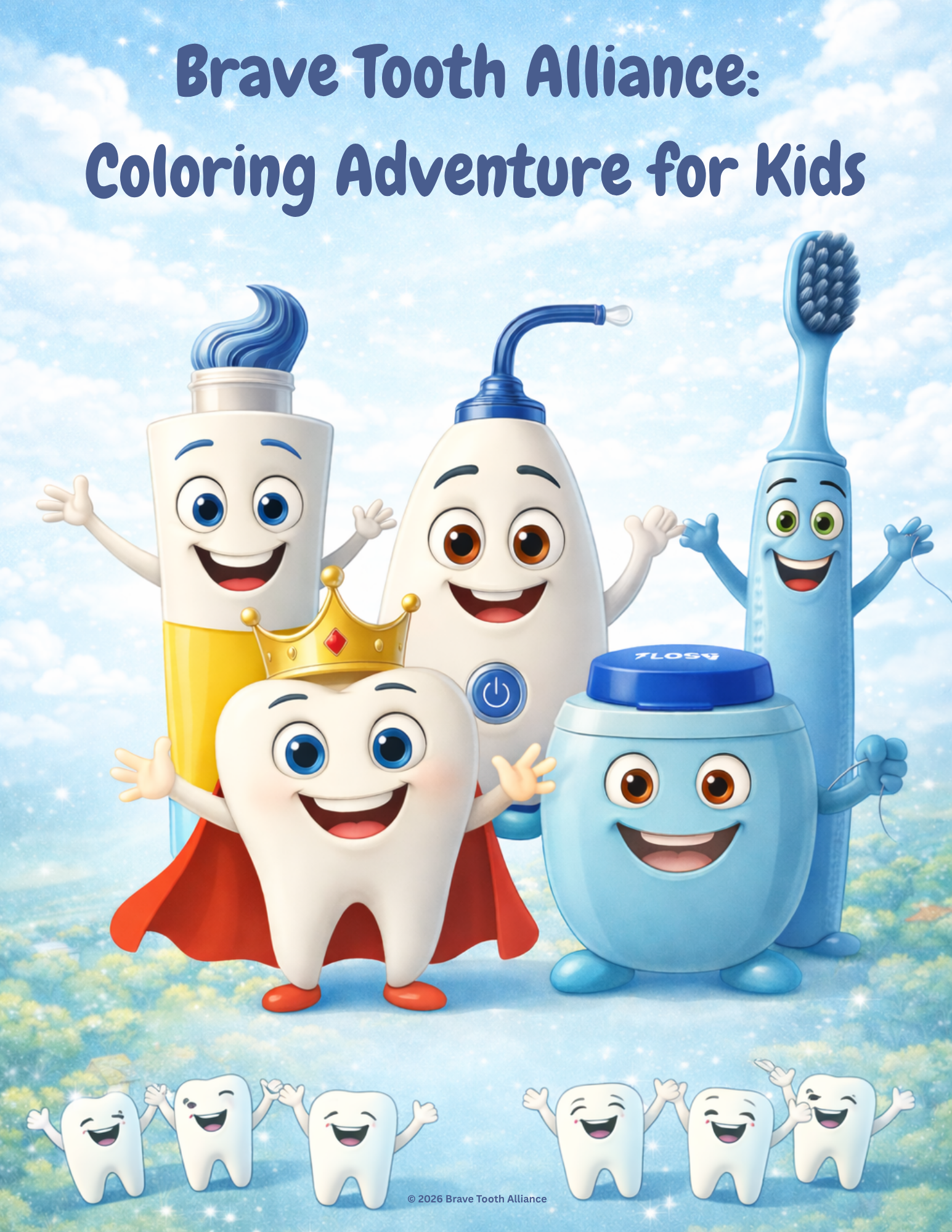 Bring the Brave Tooth Alliance story to life — one crayon at a time! This playful coloring pack lets your child explore the world of healthy smiles while adding their own creative touch to every page.